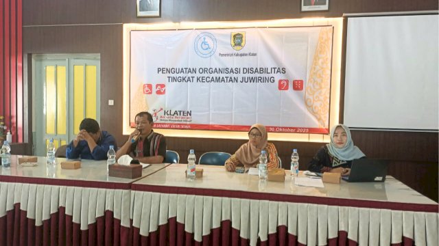 Pada hari Kamis, tanggal 30 Oktober 2025 pukul 08.00 WIB sampai dengan selesai, telah diselenggarakan kegiatan Penguatan Kelembagaan Forum Disabilitas Tingkat Kecamatan di Aula Desa Kwrasan, Kecamatan Juwiring. Kegiatan ini merupakan bagian dari upaya memperkuat peran forum disabilitas dalam membangun jejaring kerja yang inklusif serta mendorong keterlibatan penyandang disabilitas dalam perencanaan pembangunan di tingkat kecamatan. Agenda ini menjadi langkah konkret pemerintah kecamatan bersama para pemangku kepentingan dalam memperkuat kapasitas dan kelembagaan kelompok disabilitas.